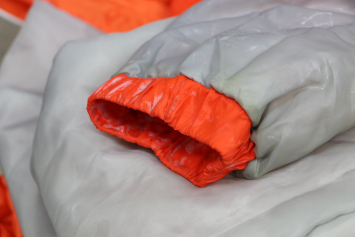 イベント用やスポーツチームからの大量ベンチコートも、色別・素材別に仕分けして洗濯します。